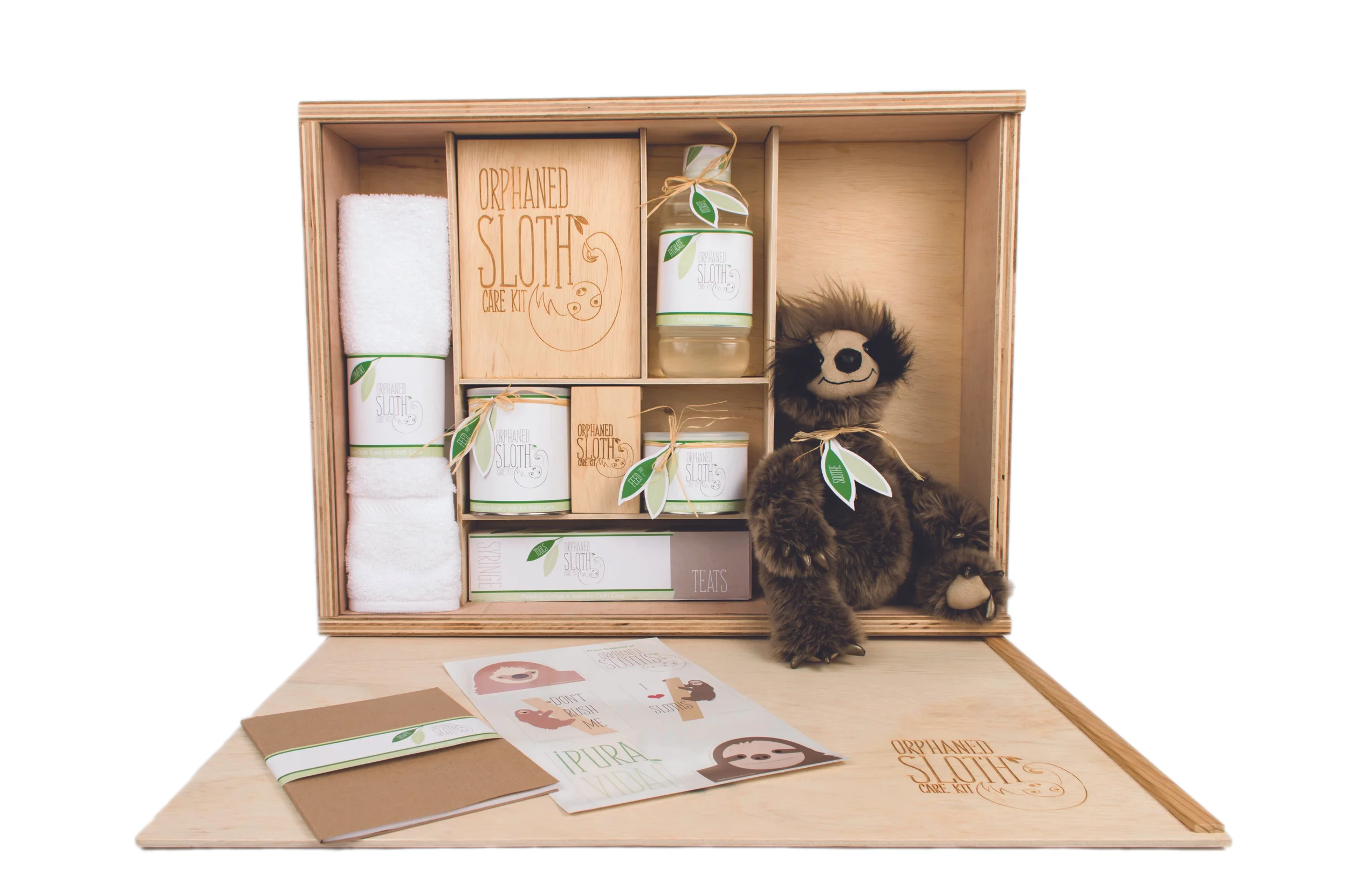 This kit was created to help orphaned infant sloths in Costa Rican sanctuaries. The kit includes everything a caretaker would need for an incoming orphaned sloth, including goat’s milk, Pedialyte, towels, a surrogate mother (stuffed animal), a journal, and feeding tools. The stickers go to donors who purchase the kit as a thank you to those who help fund the kits via the sanctuary’s on-line website. The project was setup to enable the designer a chance to explore diverse aspects across platforms of the field. This kit was taken from concept to mock-up to fully realized packaging with processes in logo design, letterpress, screen printing, contacting vendors, digital production, file structure, and physically realized container.